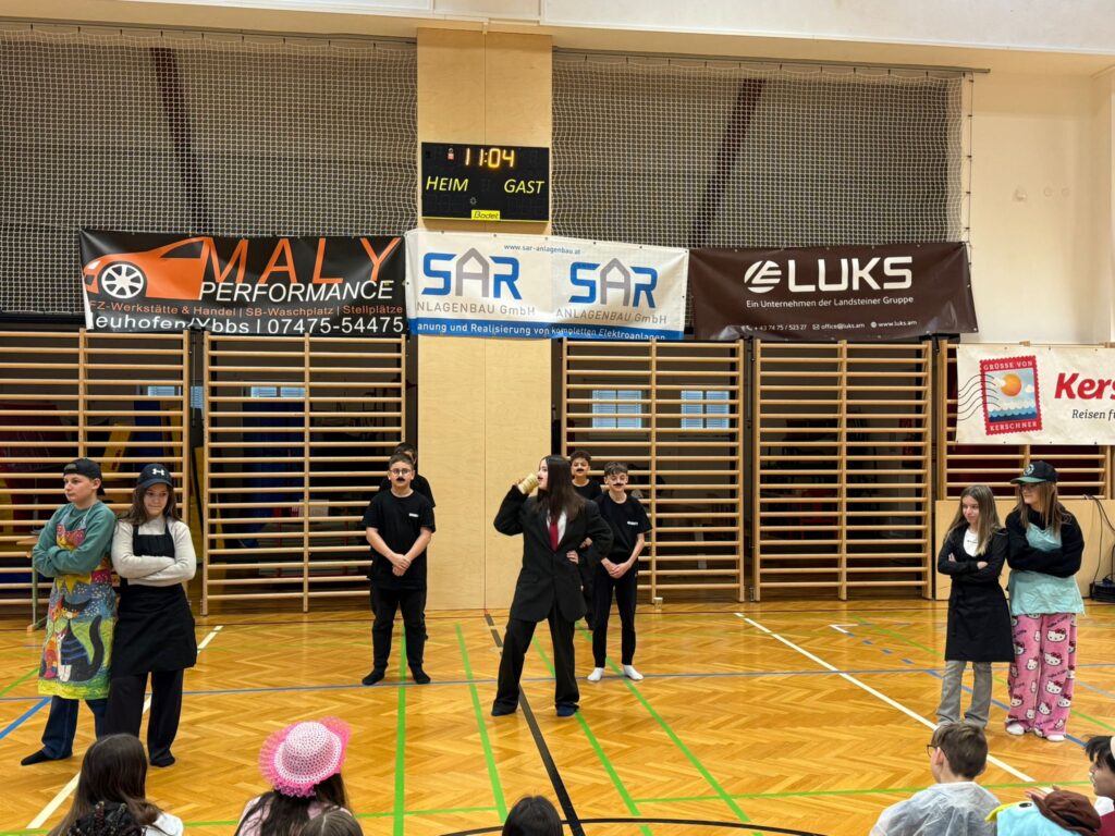 In der MS Hausmening stand heute alles im Zeichen des Faschings: Nach der großen Pause tauschten die Schülerinnen und Schüler Hefte und Stifte gegen kreative Kostüme und versammelten sich im Turnsaal, wo die Klassen und Gruppen mit ihren Aufführungen für beste Stimmung sorgten.